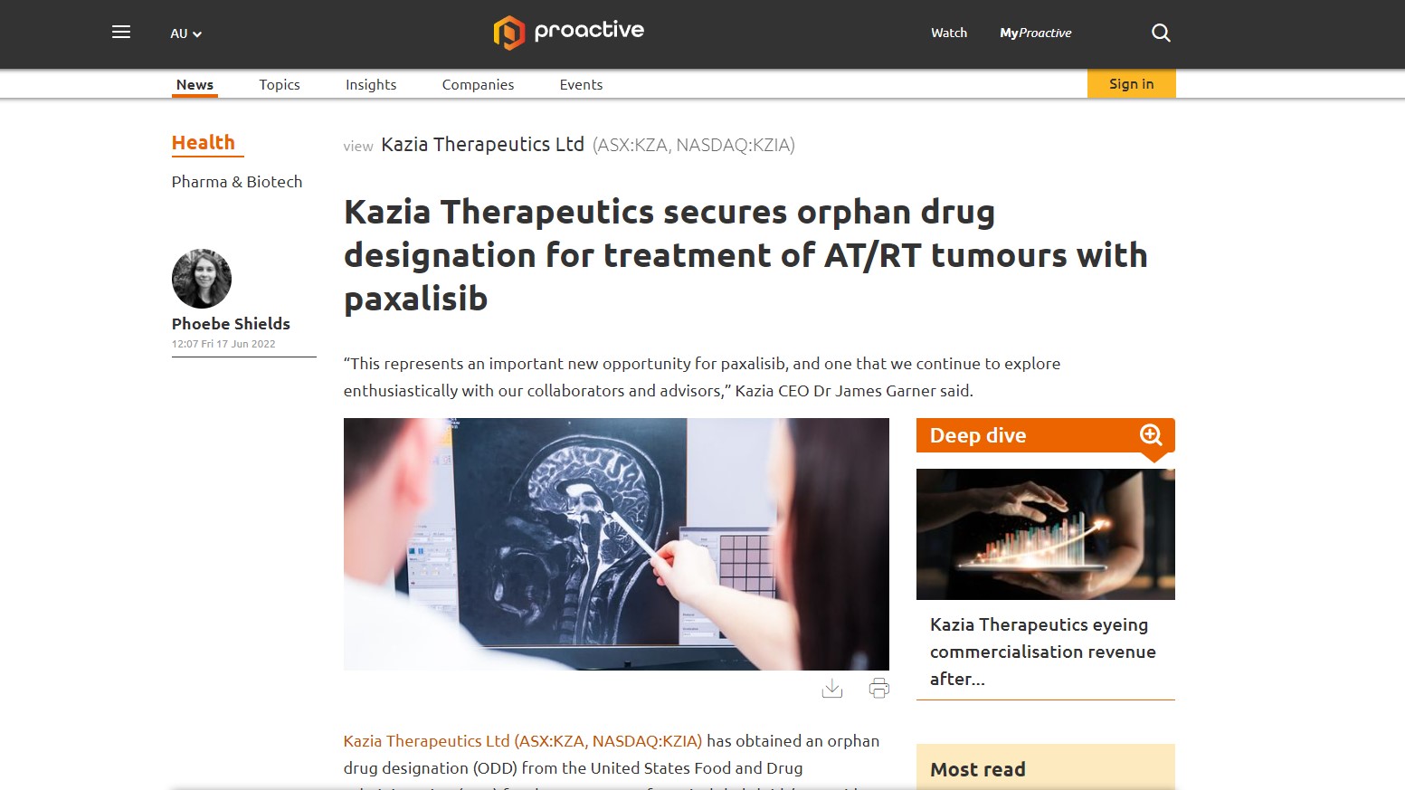 Kazia Therapeutics secures orphan drug designation for treatment of AT/RT tumours with paxalisib