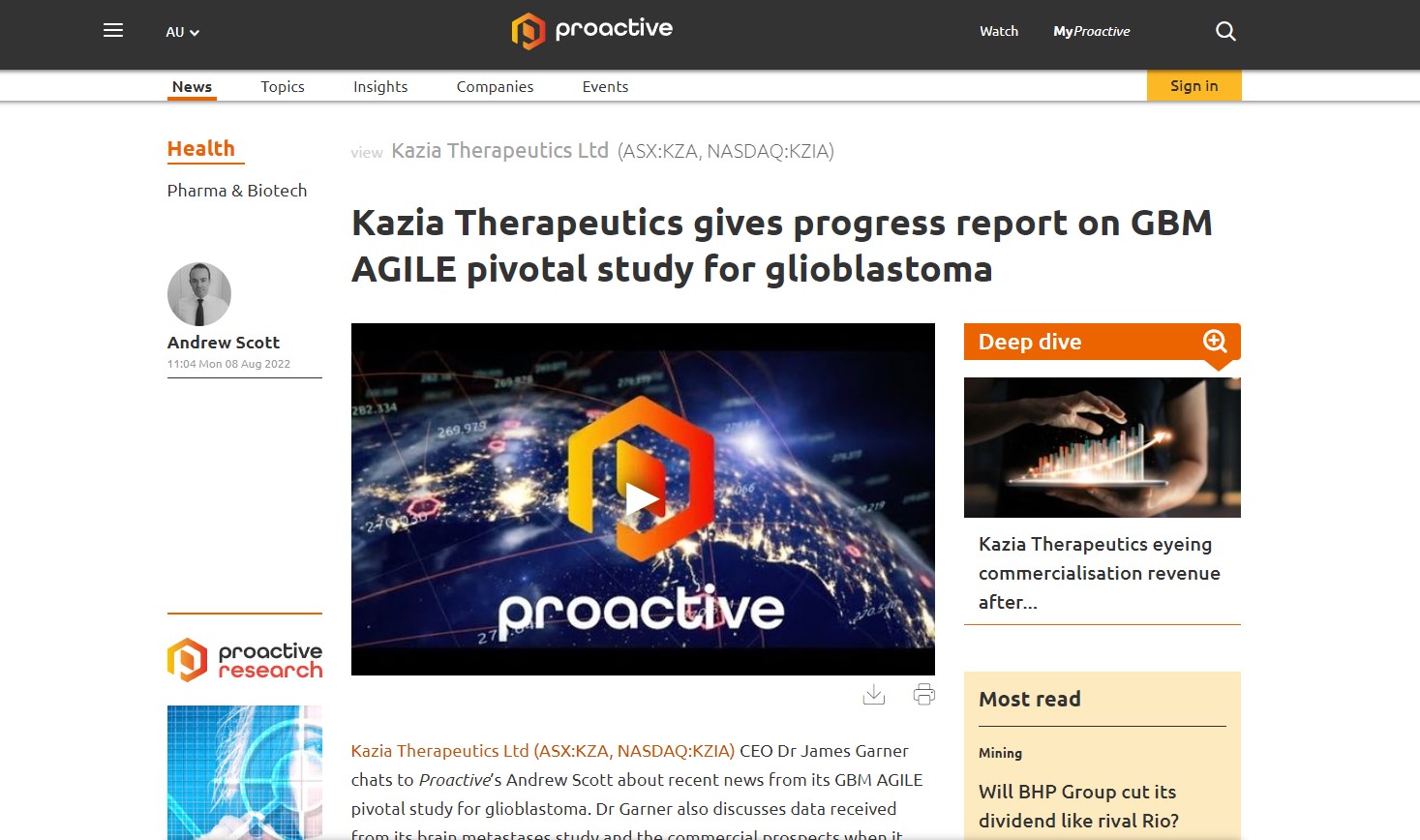 Stocks of the Hour: Kazia Therapeutics, Mesoblast, BHP &Oz Minerals
