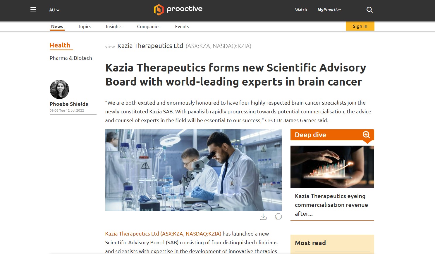 Kazia Therapeutics forms new Scientific Advisory Board with world-leading experts in brain cancer