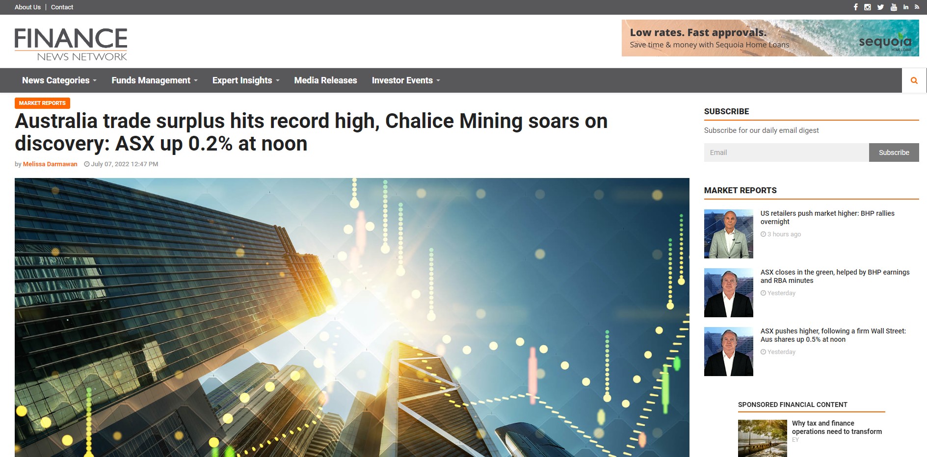 Australia trade surplus hits record high, Chalice Mining soars on discovery: ASX up 0.2% at noon