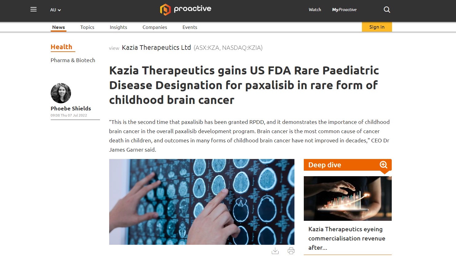 Kazia Therapeutics gains US FDA Rare Paediatric Disease Designation for paxalisib in rare form of childhood brain cancer