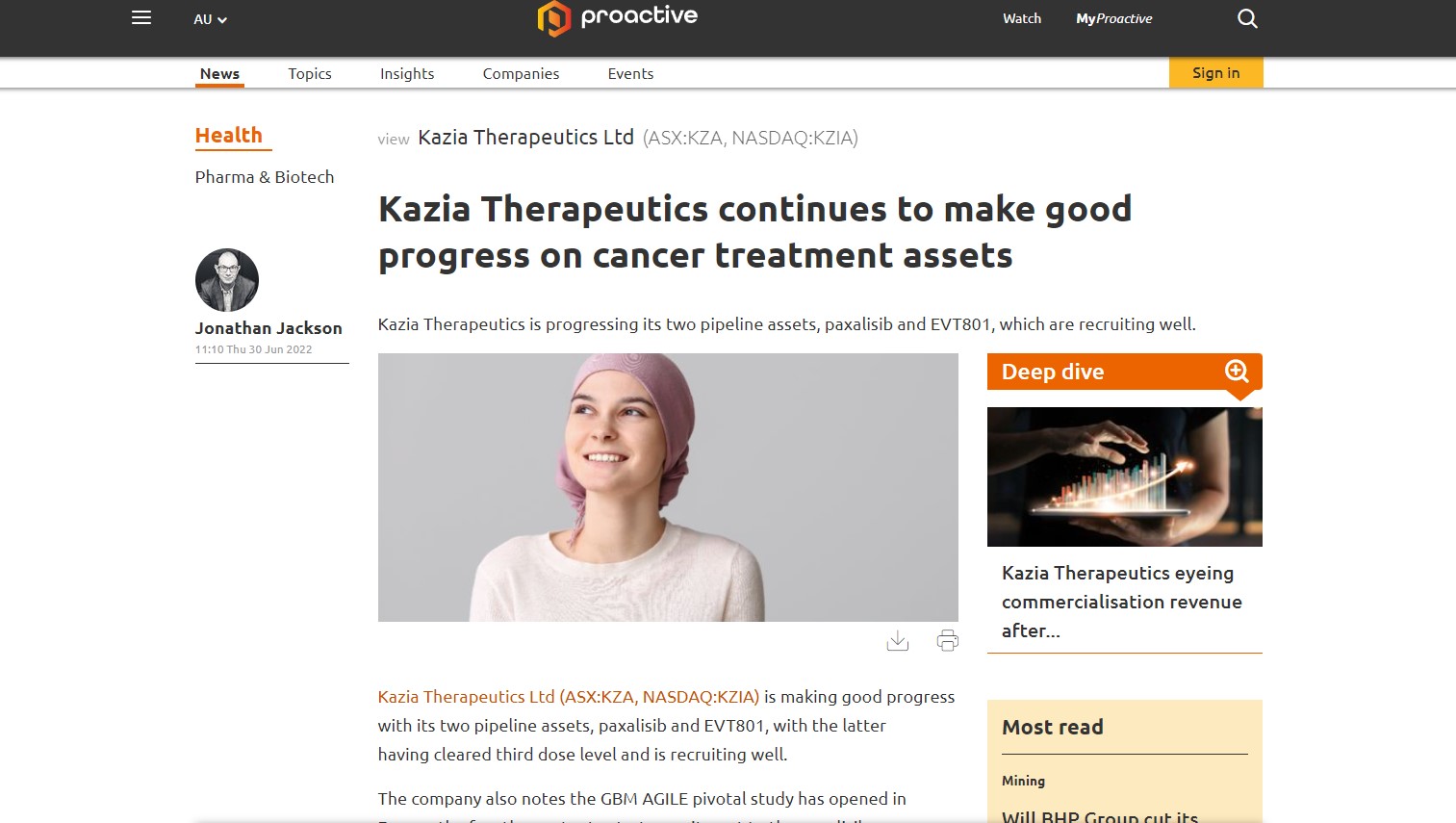 Kazia Therapeutics continues to make good progress on cancer treatment assets